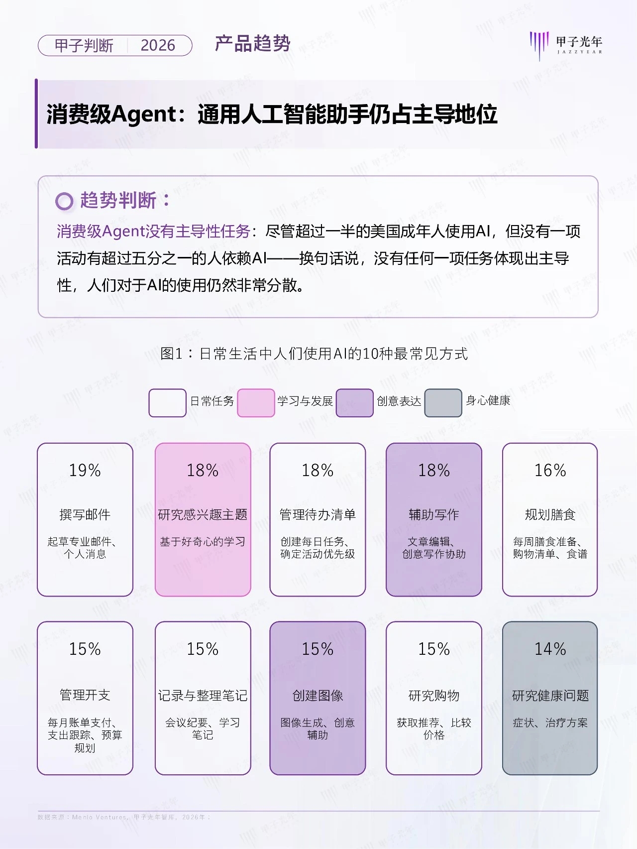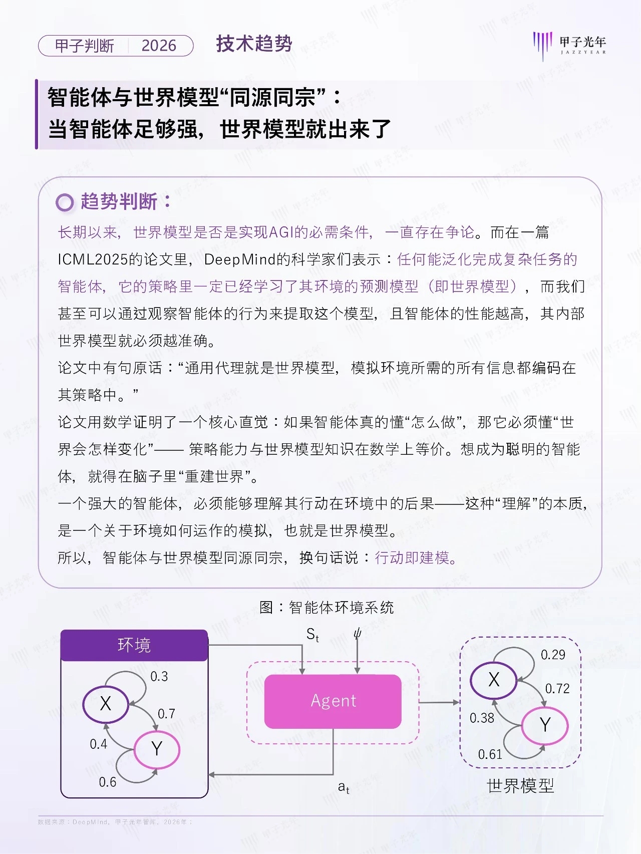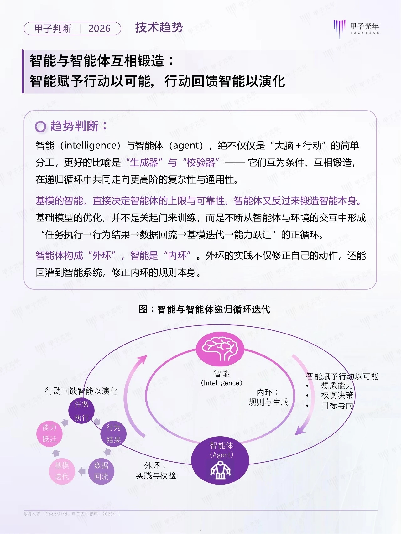 近日,甲子光年智库发布《2026年 Agent领域十大趋势判断报告》,系统梳理智能体(Agent)技术演进、产品落地与产业变革方向。报告指出,AI 已迈入 “默认式 AI” 时代,智能体成为核心载体,从技术架构、产品形态到产业生态,正全方位重构数字化发展范式。