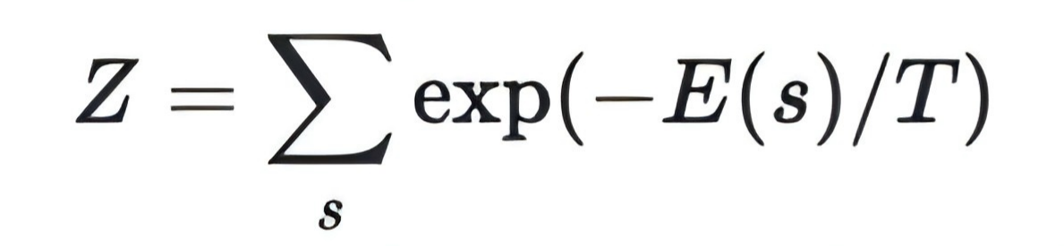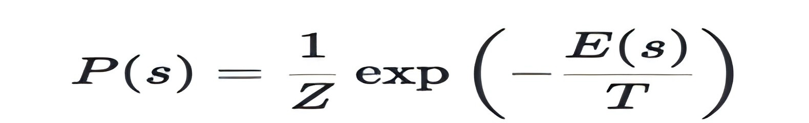 其中wij表示对称连接权重,bi为偏置项。网络动态遵循简单的更新规则,即,神经元翻转其状态以降低能量,最终收敛于局部能量极小值,对应着存储的记忆。这个 “能量景观” 类比奠定了现代生成模型的基础。但是,Hopfield网络存在容量有限和确定性动态易陷于局部极小的局限,这个瓶颈是由人工智能杰出学者Hinton 教授(2024年诺贝尔物理学奖获得者)和Sejnowski提出的玻尔兹曼机中通过引入随机性而得到问题的解决而呈现跨越式发展的。事实上,由Hinton与Sejnowski在1985年提出的玻尔兹曼机, 带来了随机性与统计力学的融合,即,从确定性的Hopfield网络到概率性的玻尔兹曼机,代表了神经网络与平衡态统计力学相关联的范式转变。玻尔兹曼机将确定的阈值更新替换为基于玻尔兹曼, 即通过吉布斯(Gibbs算法)分布的随机激活: