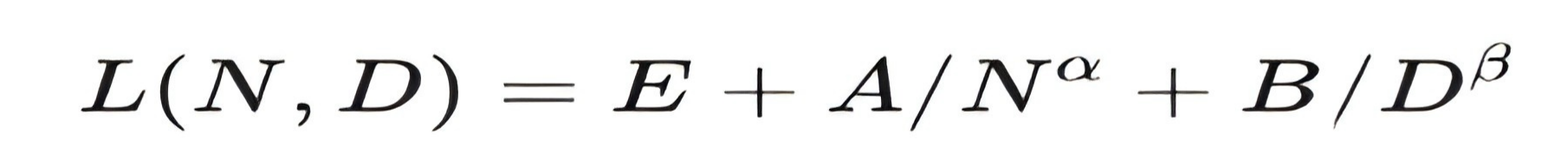 多模态框架的扩展到捕获多个缩放维度的联合效应,从上面最佳性能需要的参数数量(N)和训练tokens 数量(D)的平衡缩放支持我们原创的特征提取方法从理论到实践的实现(这里, E, A和B 是对应场景的系/常数):